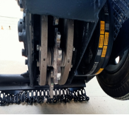 動機,風冷型 2)最大功 率: 18kw/3600rpm 3)排量:688 立方厘米(cc) 4)最大扭矩:54.1 牛頓米 5)配備有發動機緊急關閉開關 6)在同等多塵環境中使用,發動機壽命更長。 1)精密刀盤,采用鑲合金軸套加工工藝。 2)采用 6 件套優質合金刀頭,刀頭寬度為 9mm;最大切割深度 30mm;切割寬度范圍在 10-30mm 之間 堅固耐用,使用壽命高達 12000m-30000m。配套使用的 6 支銷釘、墊片及專用擋板經由多道工藝特殊手法加工而成;耗磨能力強,正常使用壽命是普通工藝的 3 倍。 3、推桿 2)獨有的驅動控制電路,對刀轂升降速度可控可調 3)防護等級:IP65,最大拉(推)力承載:7000N 4)多重功能保護,運行穩定可靠。 4、傳動 1)并連皮帶傳動 2)傳動平穩,效率高,吸震降噪。 3)散熱性強,經久耐用。 5、獨特的防護罩設計 消聲器防護罩:按照消聲器規格特別訂制,全孔采用激光加工一次成形的菱形設計,既滿足消聲器的散熱空間,整體看去大氣美觀。 獨有電源開關設計:對電路發生短路,過載等進行保護避免設備在停機狀態損耗電池電量。 6、無電機式拖泵風機 1)輪式傳動,3500轉,大風量。 2)無油潤滑設計,更耐用。 7、其他細節情況概述 1)自帶切割深度指示器:通過 12V 直流按鈕式控制開關啟動控制器,可實時控制切割深度。 2)裂縫跟蹤指示標:保證刀具可以精確的跟蹤裂縫進行規則和不規則裂縫切割。 3)刀具可在 20 分鐘內完成快速更換。 4)開槽機緊急安全停止系統:獨特的快停系統設置,剎車只需 7S,在臨近操作人員的把手上,該開關能夠迅速地激活、減少電能并關閉發動機、能夠立即停止刀轂轉動 主要配置及技術參數 外形尺寸(mm) 1800×900×1300( L*W*H ) 開槽寬度(mm) ≥10-50 開槽深度(mm) ≥0-50 整機重量(kg) 250 發動機部分 汽油發動機 隆鑫v80 發動機轉速(r/min) 3600 排量(CC) 688 額定功率(kw) 18 燃油 ≥90#(無鉛) 燃油箱容積(L) 20 機油量(L) 1.8 性能優勢 頂置三級過濾,在多塵環境中,發動機壽命更長。 其他主體部分 刀盤直徑(mm) 380 刀盤組件 6套 傳動皮帶 并連三角皮帶 開槽深度控制 升降控制器,由螺旋電動升降器控制, 在把手處由電動開關控制,深度有指示器標 操作面板及手柄 按鈕控制,方便簡單,可按操作者要求調整高度 裂縫跟蹤指示 裂縫跟蹤指示保證刀具準確并可沿不規則裂縫工作 輪胎 公路專用輪胎,密封式滾錐軸承,輕便行駛 蓄電池 12V 行進制動 操作者只需將操作手柄向下按壓,使刀盤提升離地后即可制動開槽機 吸塵裝置 集中回收煙塵處理,做到無揚塵污染性施工。2、精制刀盤組件